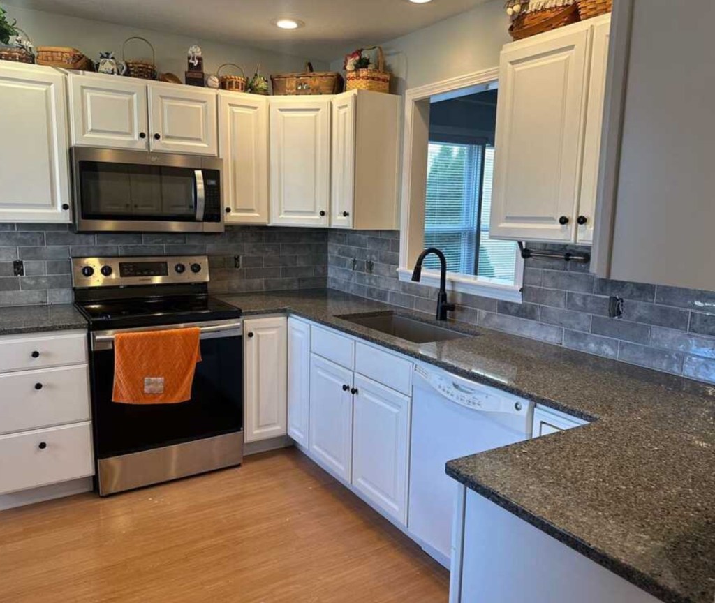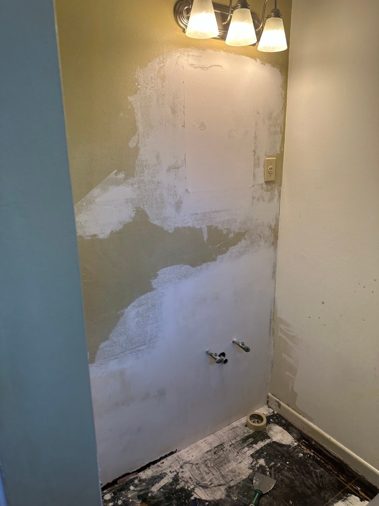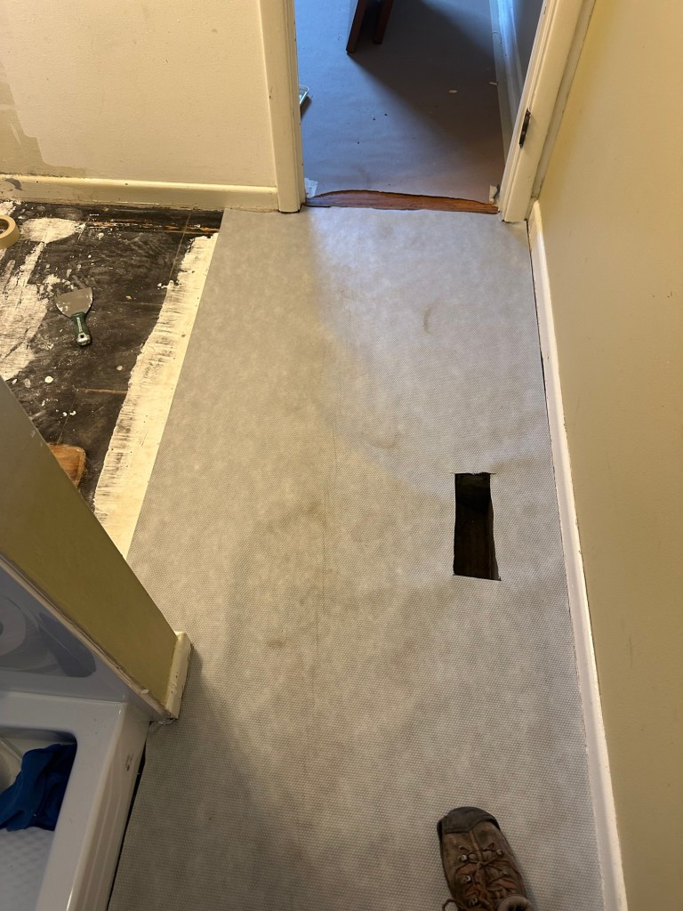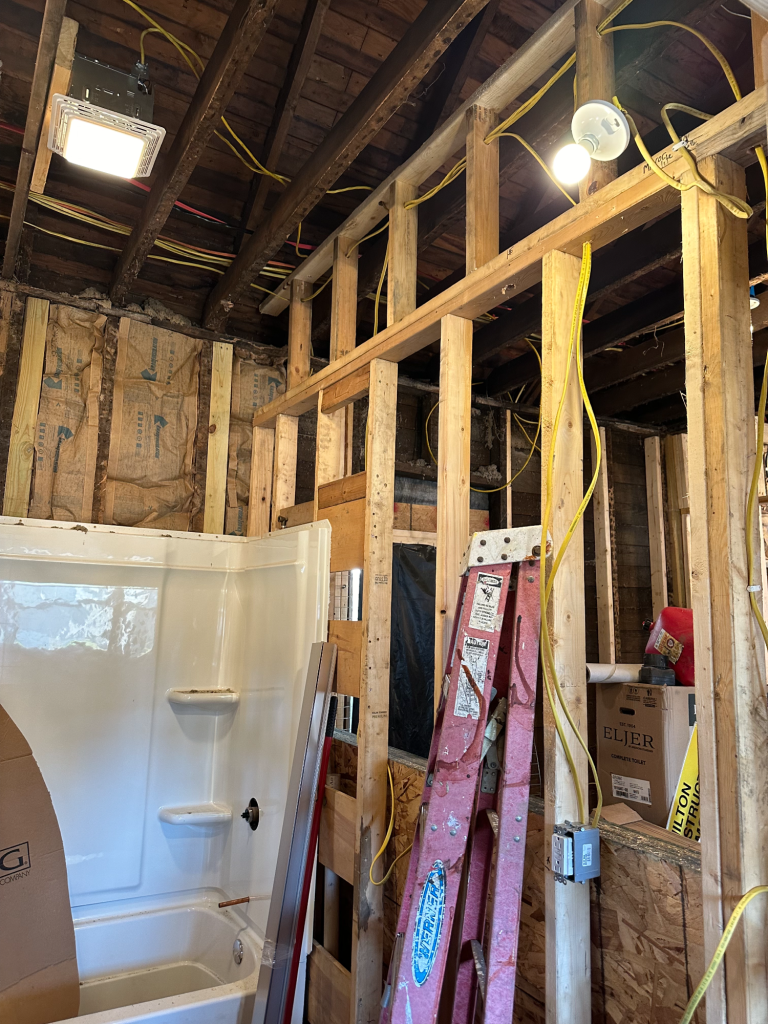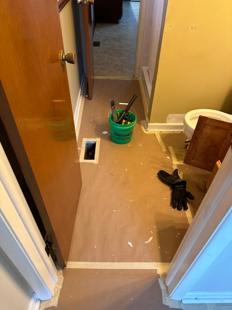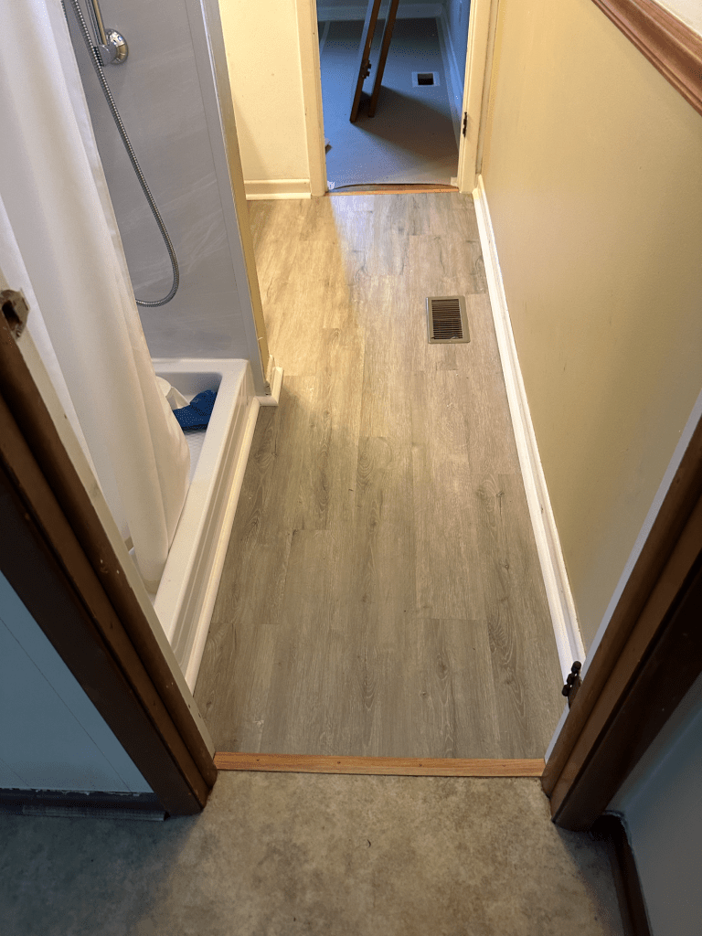 Full bathroom remodel in Indianapolis. Bathtub, flooring, toilet, vanity, baseboards were all replaced: